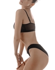 Топ-бра з поєднанням сітки та мережива з бретелями на регуляторах та вишитим логотипом позаду.